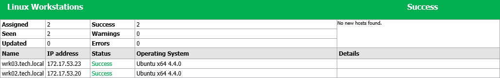 - Detailed statistics for every protected computer processed within the session: DNS name, IP address and operating system of the protected computer, list of warnings and errors (if any).