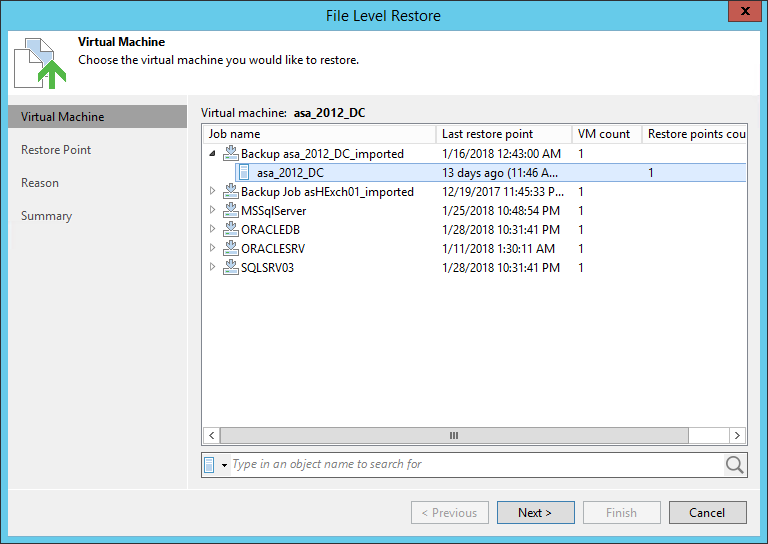 Select the backup or replica of the domain controller from which the Active Directory database should be restored. Click Next to proceed to Step 3. Choose the Restore Point.