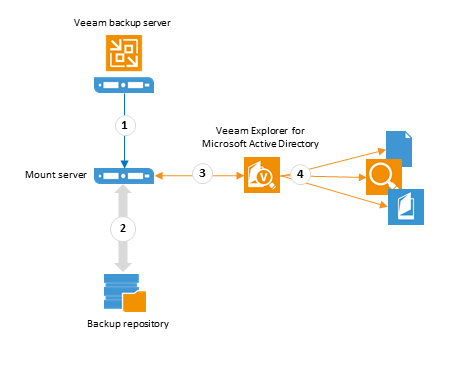 The following steps briefly describe the overall process when recovering Active Directory objects using Veeam Explorer for Microsoft Active Directory:
