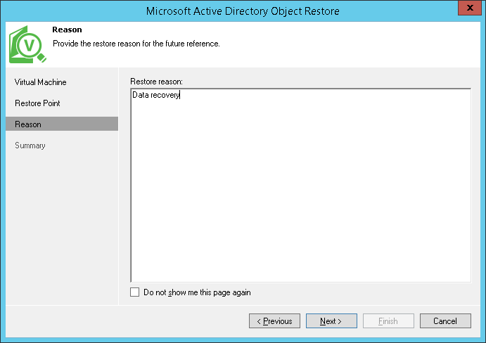 If necessary, enter the reason for performing VM guest file restore and click Next. The information you provide will be saved in the session history.