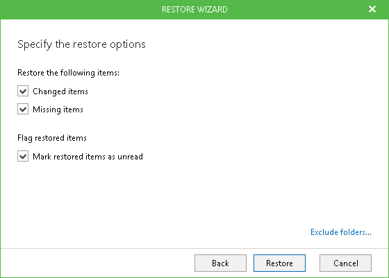- Select the following restore options and click Next: