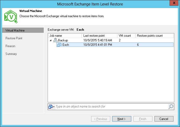 Select the necessary virtual machine. You can also use the search field at the bottom of the window to quickly find VMs you need.