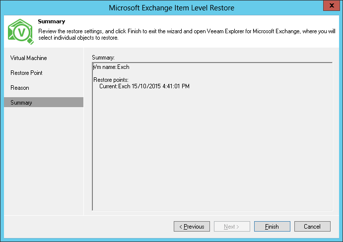 - If the Exchange Server VM was backed up using the application-aware image processing, Veeam will do the following: