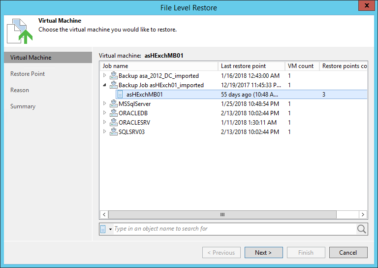 Select a VM to restore. Click Next.