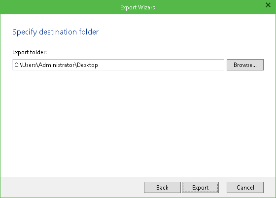 Specify the destination folder where to export selected schema objects. Default location is C:\Users\%username%\Desktop. Veeam Explorer will save database schema objects in the <selected_db_name>.SQL file in that folder. Click Export.