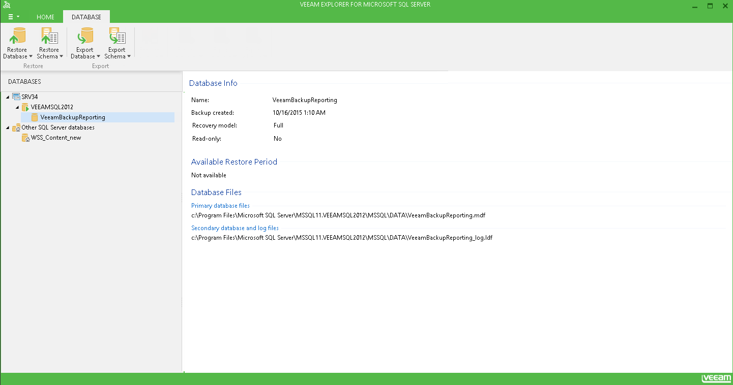 - For each database - name, backup creation date, recovery model, whether in read-only mode, database files location for databases and log files, availability of the restore scenario (if restore to point in time is possible due to backup settings).
