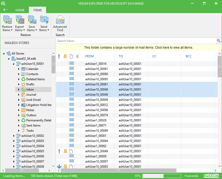 Veeam Explorer for Microsoft Exchange allows you to quickly export mailbox store data directly to the .pst file.