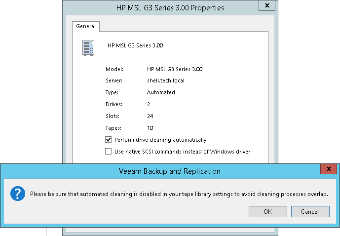 If you enable the automated drive cleaning option in Veeam Backup & Replication, make sure that you disabled the drive cleaning tasks on your tape library device. |