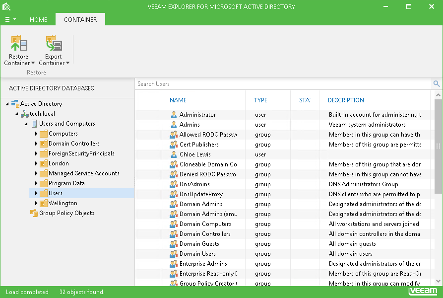 - Veeam Backup & Replication will open the Microsoft Active Directory Object Restore wizard. You can use this wizard to automatically extract the Microsoft Active Directory database from the backup or replica and open it in Veeam Explorer for Microsoft Active Directory.