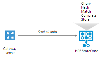 HPE StoreOnce deduplicates data on the target side, after the data is transported to HPE StoreOnce: