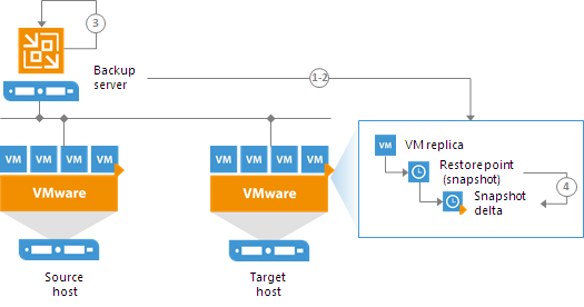 Failover is a process of switching from the original VM on the source host to its VM replica on the target host.