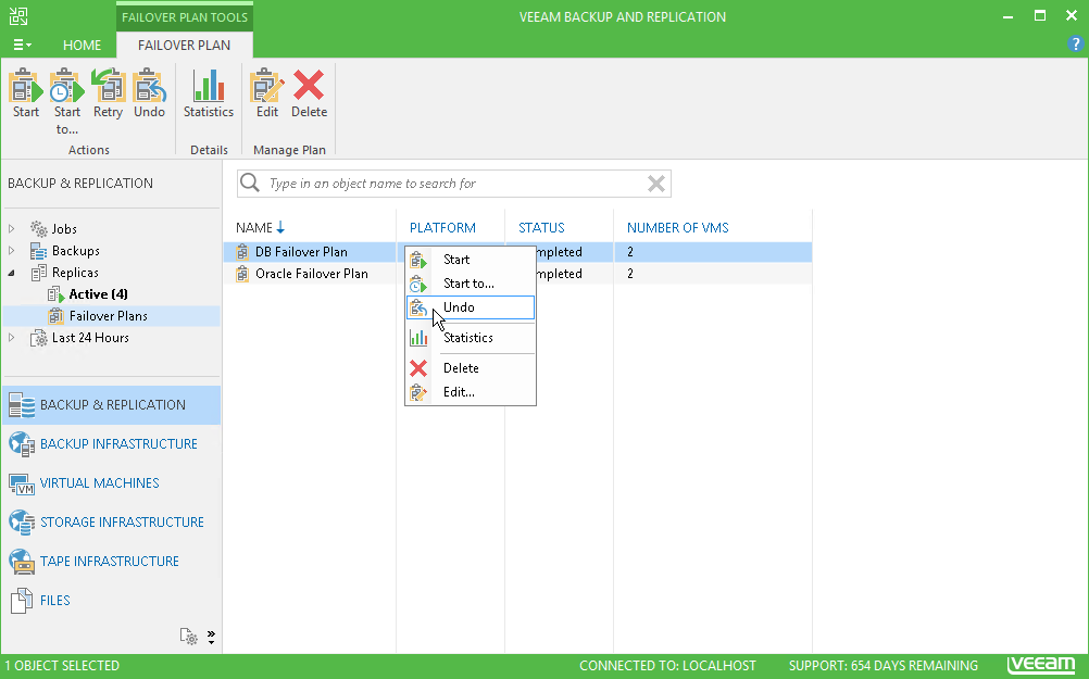 - In the working area, right-click the failover plan and select Undo.