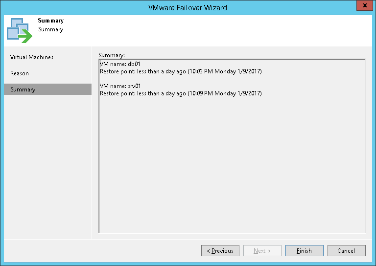 When the failover process is complete, the VM replica(s) will be started on the target host(s).