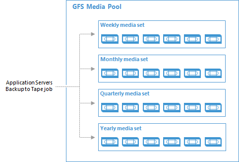 The GFS media pools are special media pools that store data to tape according to the GFS, or Grandfather-Father-Son rotation scheme. The GFS media pools are targets for GFS tape jobs. For details, see GFS Backup to Tape.