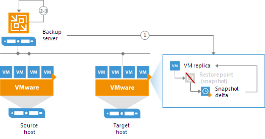 - Veeam Backup & Replication removes snapshots (restore points) of the VM replica from the snapshot chain and deletes associated files from the datastore. Changes that were written to the snapshot delta file are committed to the VM replica disk files to bring the VM replica to the most recent state.