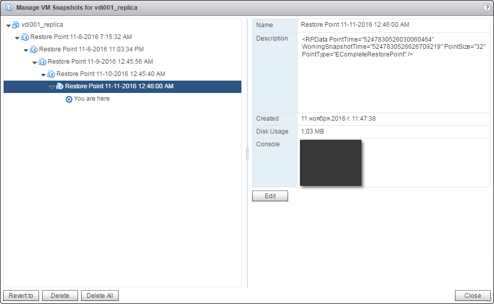 VM replica restore points are stored in a native VMware vSphere format next to replica virtual disk files, which allows Veeam Backup & Replication to accelerate failover operations. To fail over to the necessary point of the VM replica,Veeam Backup & Replication does not need to apply rollback files. Instead, it uses a native VMware vSphere mechanism of reverting to a snapshot.