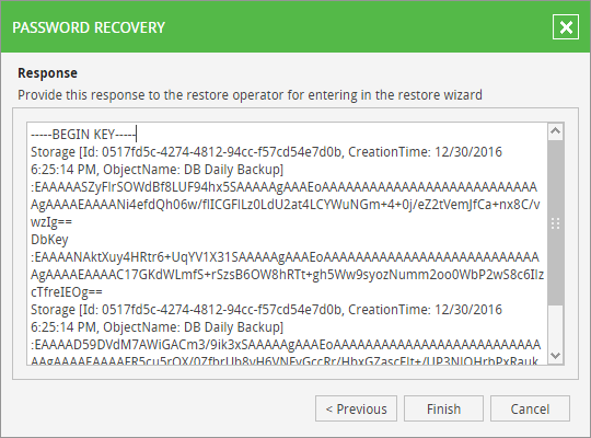 - Send the copied response by email or pass it in any other way to the Veeam Backup Administrator working on the backup server.