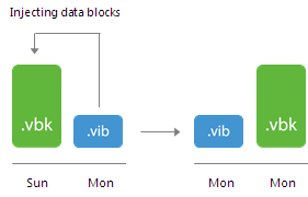 - Veeam Backup & Replication merges data blocks from the incremental backup file created on Monday into the full backup file created on Sunday. This way, the full backup file ‘moves’ one step forward — from Sunday to Monday.