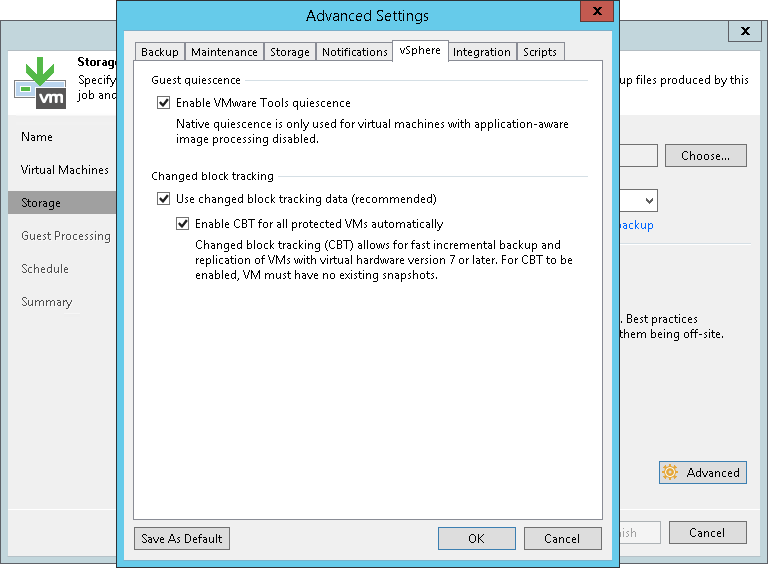 VMware Tools quiescence is enabled at the job level for all VMs added to the job. By default, this option is disabled.