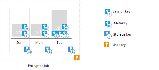 The user key protects data at the job level. In the encryption hierarchy, the user key encrypts storage keys for all restore points in the backup chain.