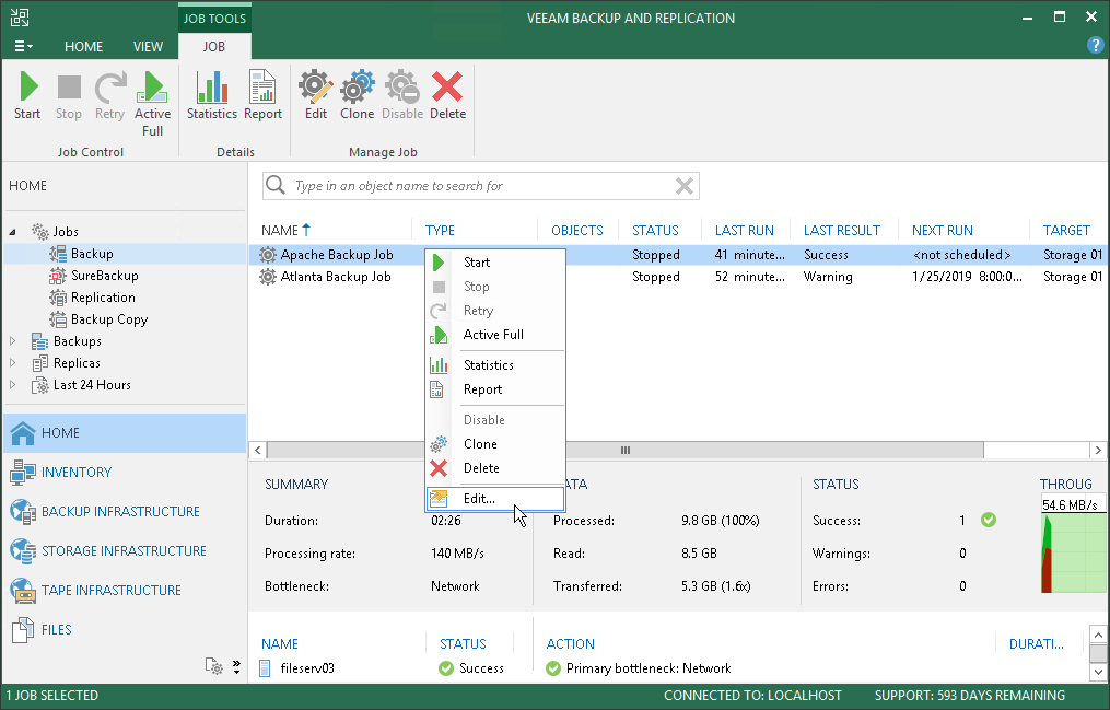 3. In the working area, select the job and click Edit on the ribbon or right-click the job and select Edit.