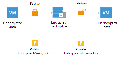 Veeam Backup & Replication offers you a way to restore encrypted data even if you do not have a password. For this purpose, Veeam Backup & Replication employs an additional pair of keys in the encryption process — Enterprise Manager keys.
