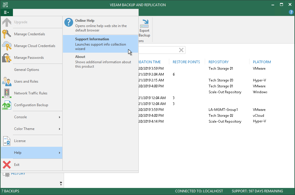 The main menu in Veeam Backup & Replication contains commands related to general application settings. You can perform the following operations using the main menu:
