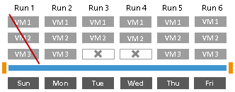 - During the 3rd and 4th job runs, VM 1 and VM 2 were successfully backed up, and VM 3 failed.