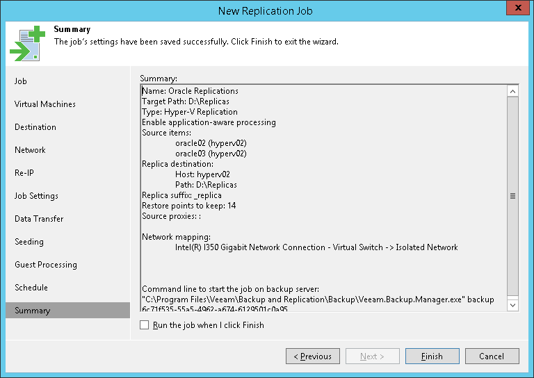 At the Summary step of the wizard, complete the procedure of replication job configuration.