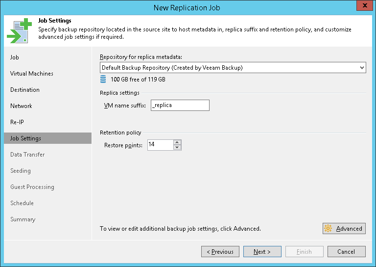 This setting must be specified only for snapshot replicas. Legacy replicas do not use a backup repository for storing metadata. For more information, see VM Replica Types.