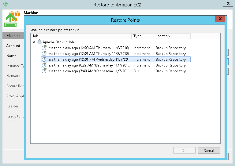 By default, Veeam Backup & Replication restores a machine to the latest valid restore point in the backup chain. However, you can restore the machine to an earlier restore point.