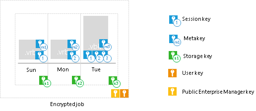 The user key protects data at the job level. In the encryption hierarchy, the user key encrypts storage keys for all restore points in the backup chain.
