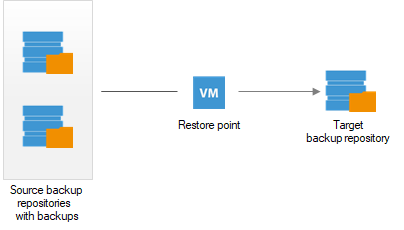Veeam Backup & Replication does not necessarily use a backup created by one job and one backup repository as a source of data. It can copy data from backups created by different jobs and even from different backup repositories. When you set up a backup copy job, you only define what machines you want to process. During the backup copy job, Veeam Backup & Replication searches for the most recent restore point in all available backup repositories, copies data blocks from it and saves them to a backup file on the target backup repository.