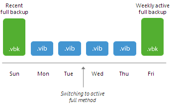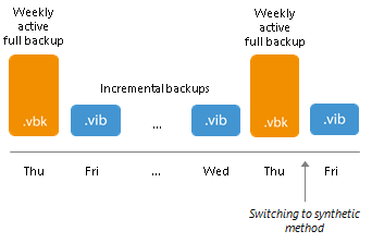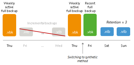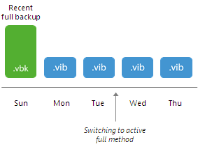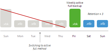 In this case, Veeam Backup & Replication will work by the standard archive full backup scheme. For more information, see Weekly Backup Cycle.