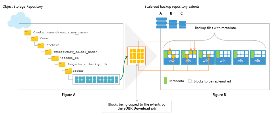 - Before copying requested data blocks, Veeam verifies whether any of such blocks exist on any of the extents of your scale-out backup repository. If found, Veeam uses these blocks instead of downloading the exact same blocks of data from the object storage repository.
