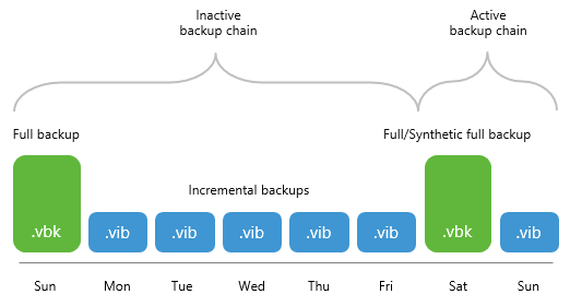 - The Figure A shows a backup chain consisting of 2 .vbk files and 5 .vib files created with the synthetic full method.