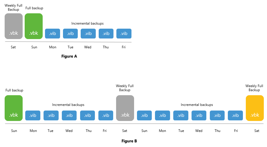 - The Figure B shows a backup chain consisting of 3 .vbk files and 11 .vib files created with the active full method.