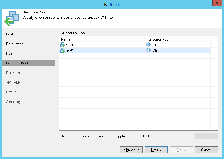 The Resource Pool step of the wizard is only available if you have chosen to perform advanced failback.