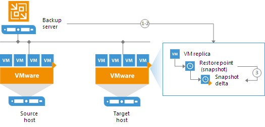 Failover is a process of switching from the original VM on the source host to its VM replica on the target host.