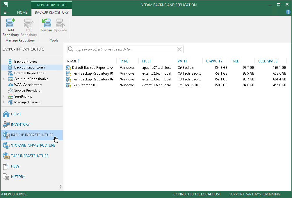 The navigation pane, located on the left of the window, provides centralized navigation and lets you easily access Veeam Backup & Replication items organized in views.