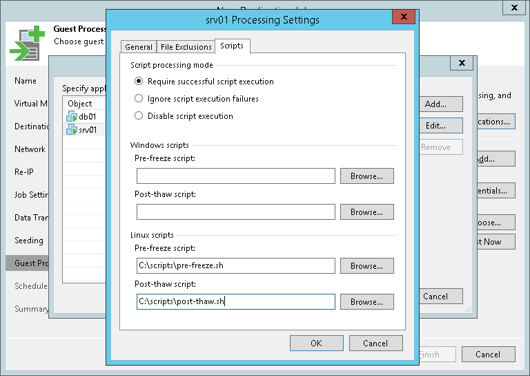 - Select Require successful script execution if you want Veeam Backup & Replication to stop the replication process if the script fails.