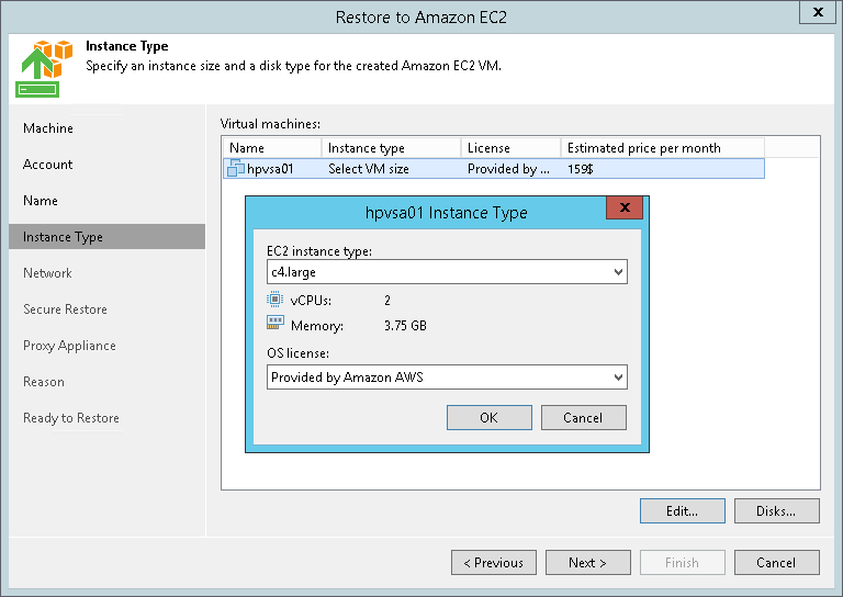 Note that if you restore an EC2 instance from backups created with Veeam Backup for AWS, Veeam Backup & Replication will identify the type of a backed-up instance and select it by default.