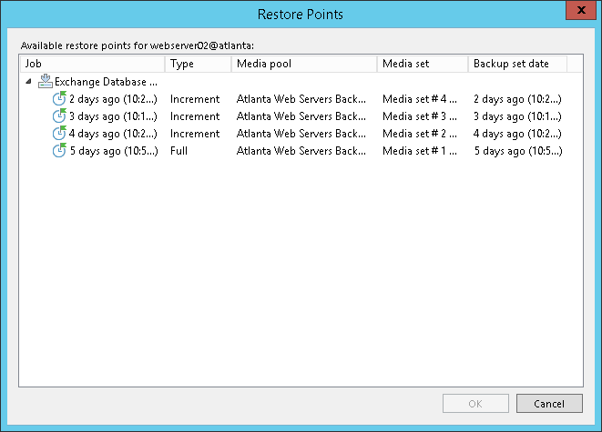 By default, Veeam Backup & Replication will restore backup with the latest state of the archived machine. However, if you want to restore a backup for the machine to an earlier state, select a machine in the list and click Point on the right. In the Restore Points section, select a restore point that should be used to restore machine backup.