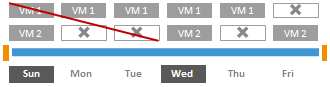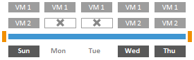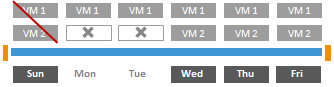 For example, a backup job processes two VMs: VM 1 and VM 2. According to the retention policy settings, the backup chain must contain 5 restore points. The backup job has already had 5 job sessions and VMs have been processed in the following way: