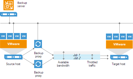 It is recommended that you throttle network traffic if you perform offsite backup or replicate VMs to a DR site over slow WAN links. |