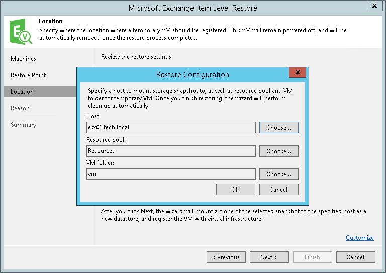 - Next to the Folder field, click Choose and select a folder to which you want to place the temporary VM.