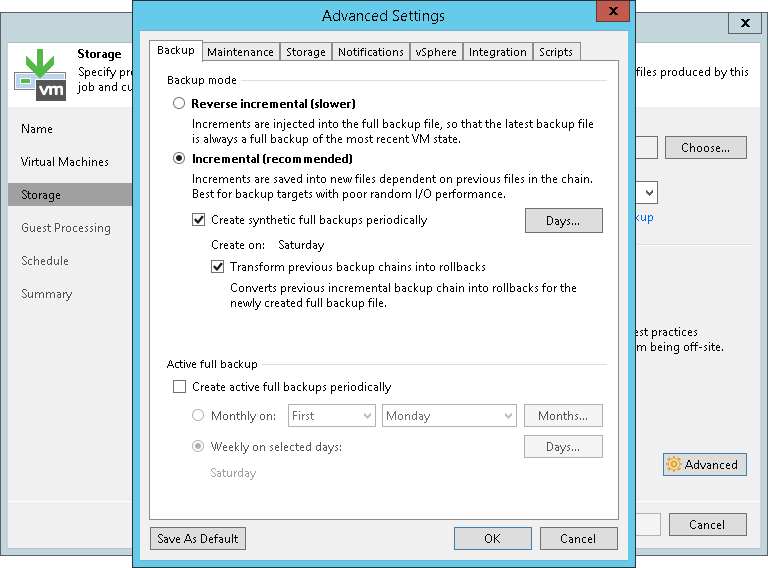 - When you run the backup job next time, Veeam Backup & Replication adds a new increment to the backup chain. The synthetic full backup will be used as a starting point.