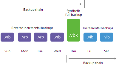 - Veeam Backup & Replication repeats the process for Tuesday, Wednesday and Thursday increments. As a result, you have the synthetic full backup created on Thursday and a set of reverse increments for Sunday through Wednesday.