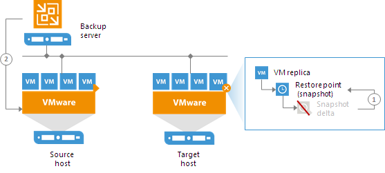 - Veeam Backup & Replication reverts the VM replica to its pre-failover state. To do this, Veeam Backup & Replication powers off the VM replica and gets it back to the state of the latest snapshot in the snapshot chain. Changes that were written to the snapshot delta file while the VM replica was in the Failover state are discarded.