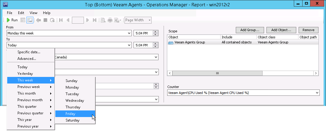 This is an archive version of the document. To get the most up-to-date information, see the current version. Step 2. Define Time Intervals Choose the time range for the report.From the From list, choose This week > Monday. From the To list, choose This week > Friday.